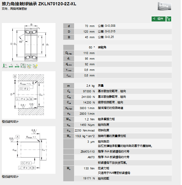 轴承型号:ZKLN70120-2Z