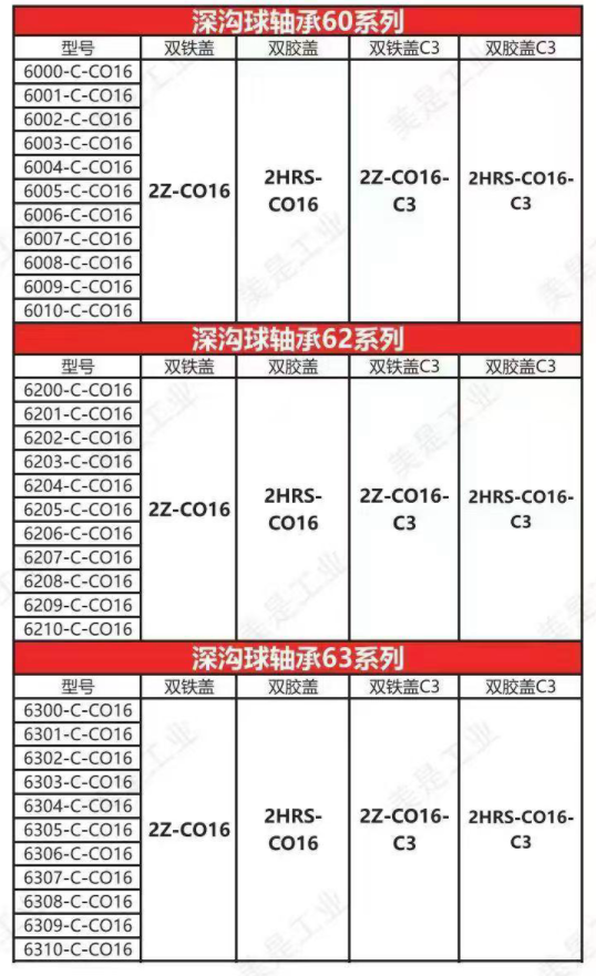 单列深沟球轴承类型代号为6,双列深沟球轴承代号为4。其结构简单,使用方便,是生产普遍,应用广泛的一类轴承。