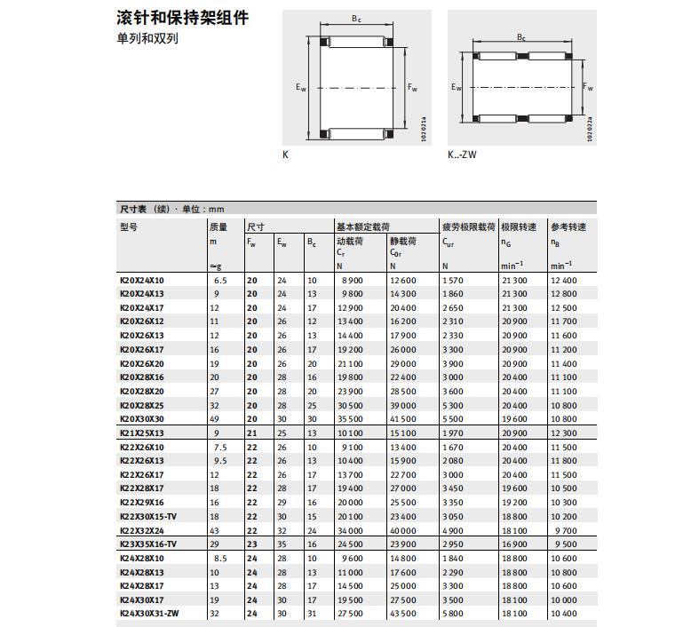 INA滚针和保持架组件的类型:K K..ZW KZK KBK