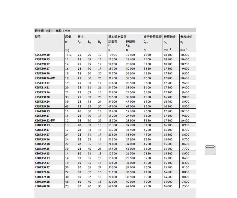 横截面高度非常小 因为其径向截面与滚针的直径相同,滚针和保持架组件可以应用于非常小的轴与轴承座内部空间。此类轴承承载能力高,适用于高速而且特别易于安装。