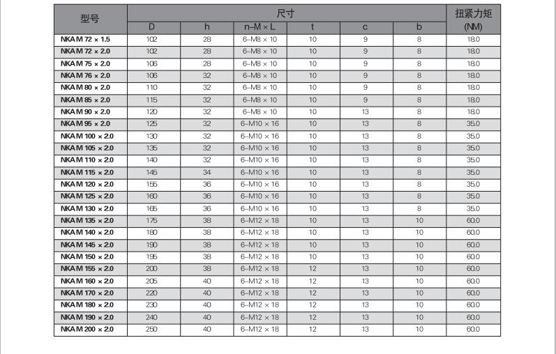 用途:NUT精密锁紧螺母因其能有效提高组装精度,改善主轴挠,安装简单,不易松脱,并延长工件使用寿命,而被广泛应用于需要精密 强力 安全锁紧的精密机构上。