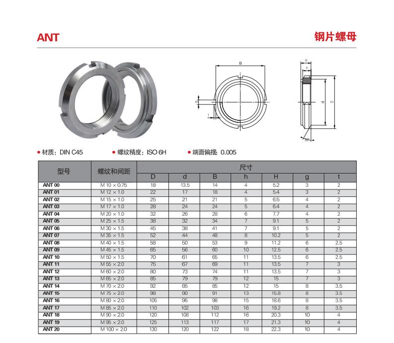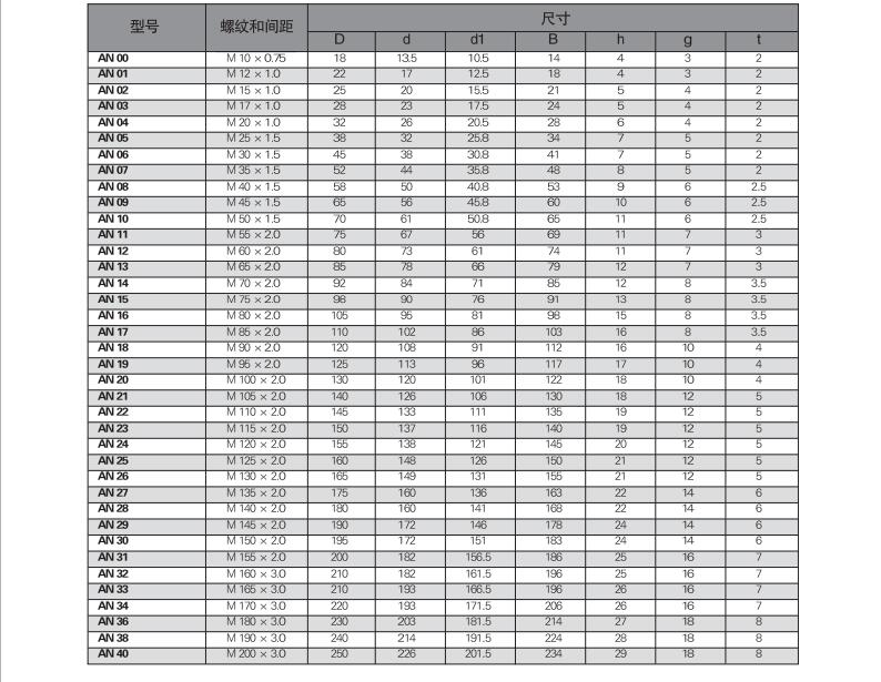 用途:NUT精密锁紧螺母因其能有效提高组装精度,改善主轴挠,安装简单,不易松脱,并延长工件使用寿命,而被广泛应用于需要精密 强力 安全锁紧的精密机构上。