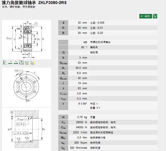 | 轴承型号: | ZKLF3080-2RS | |