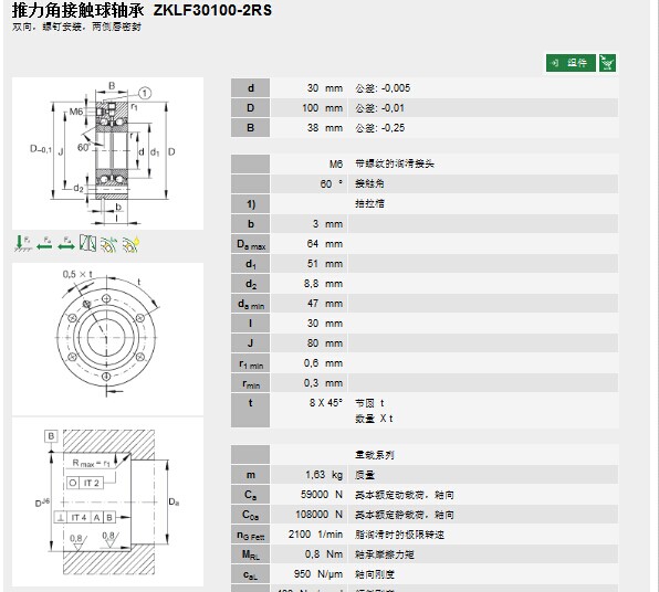 | 轴承型号: | ZKLF30100-2RS | |