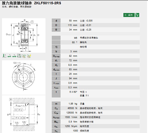| 轴承型号: | ZKLF50115-2RS | |