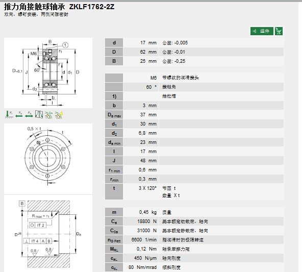 | 轴承型号: | ZKLF1762-2Z | |