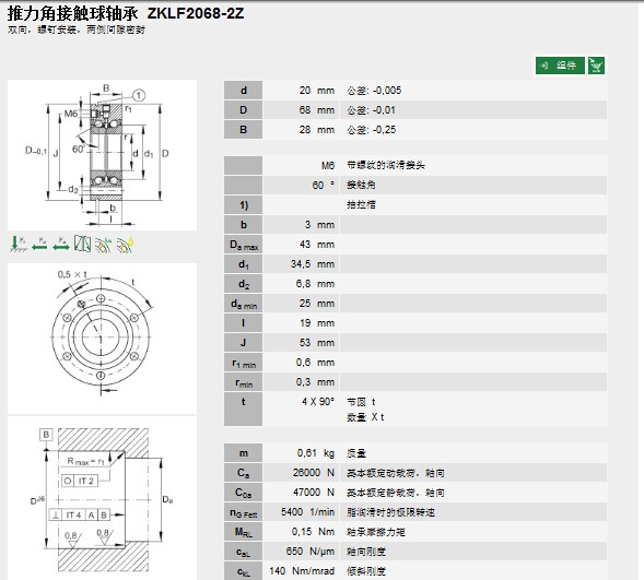 | 轴承型号: | ZKLF2068-2Z | |