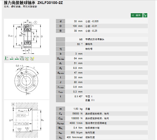 | 轴承型号: | ZKLF30100-2Z | |