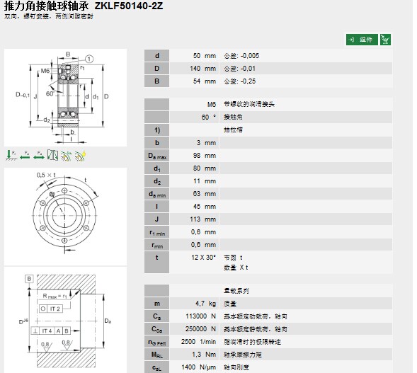 | 轴承型号: | ZKLF50140-2Z | |