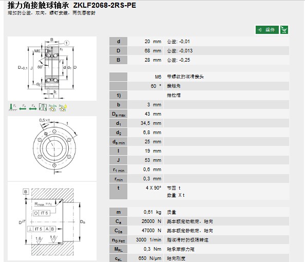 | 轴承型号: | ZKLF2068-2RS-PE | |