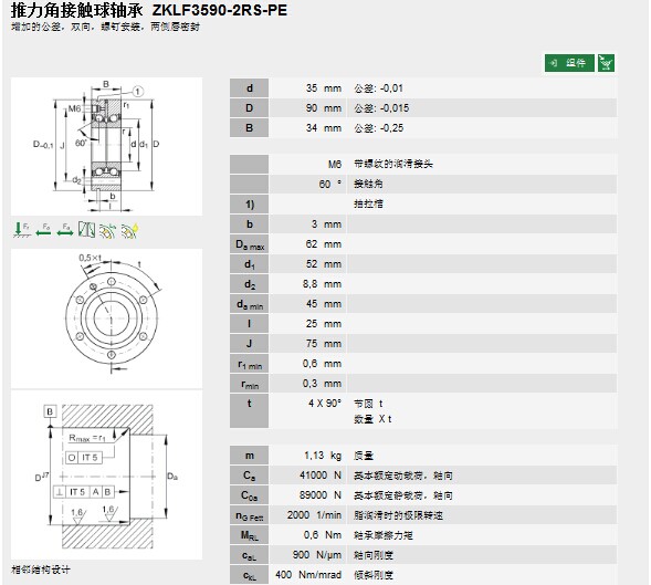 | 轴承型号: | ZKLF3590-2RS-PE | |