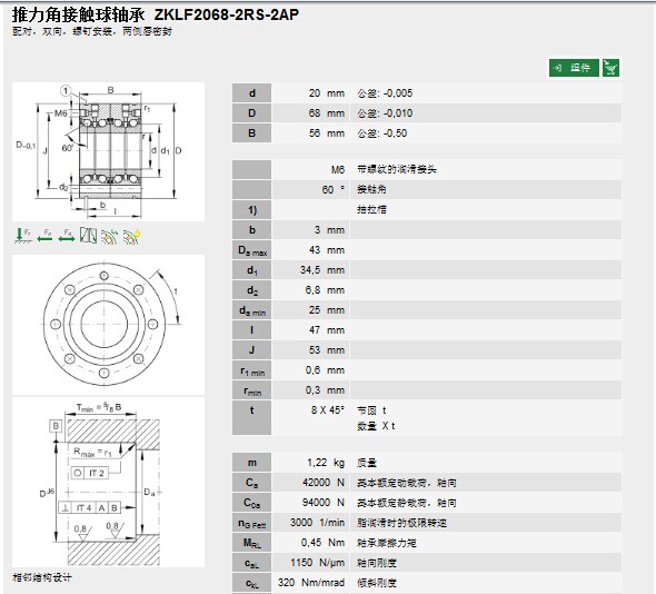 | 轴承型号: | ZKLF2068-2RS-2AP | |