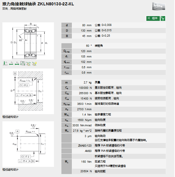 轴承型号:ZKLN80130-2Z