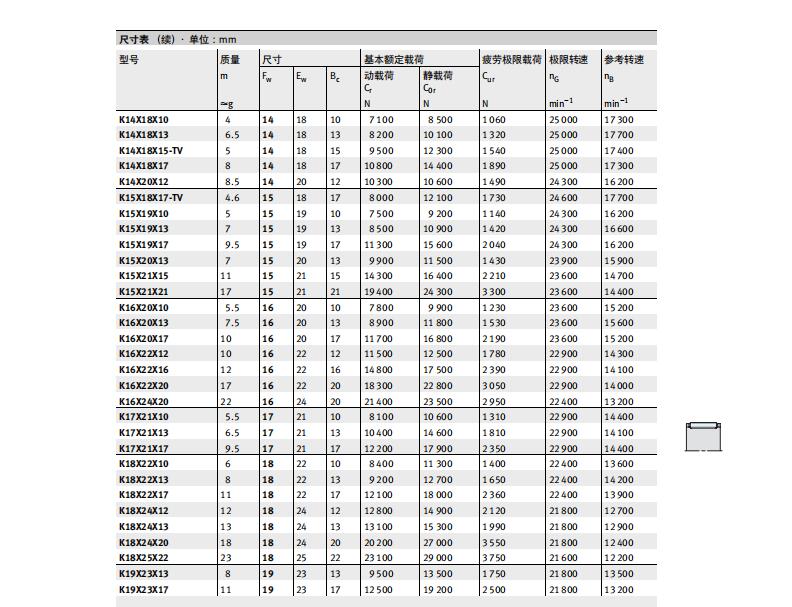 横截面高度非常小 因为其径向截面与滚针的直径相同,滚针和保持架组件可以应用于非常小的轴与轴承座内部空间。此类轴承承载能力高,适用于高速而且特别易于安装。