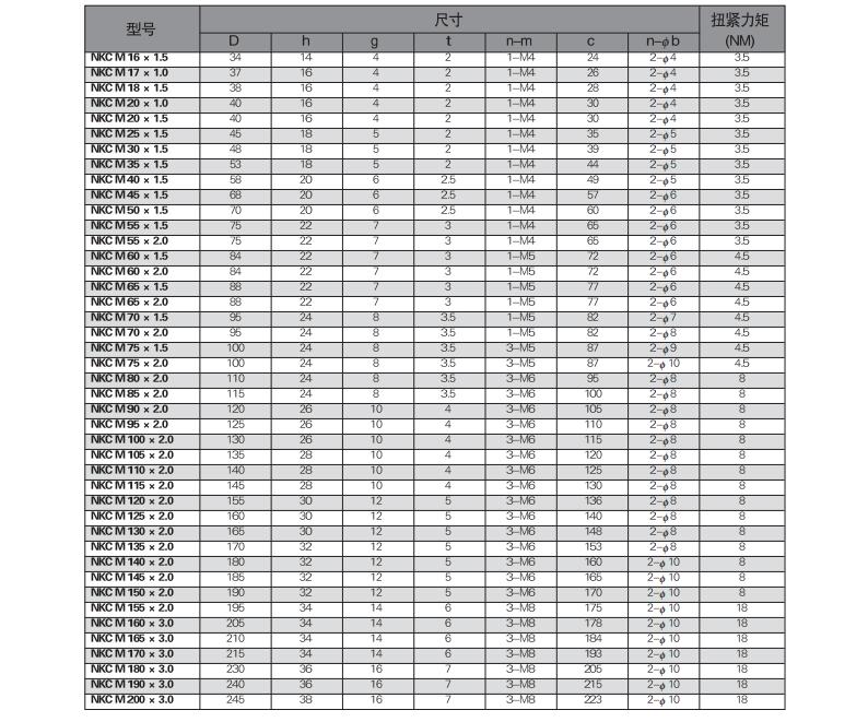 NUT精密锁紧螺母的供货品种包括: