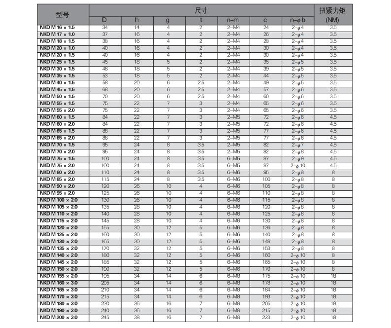 用途:NUT精密锁紧螺母因其能有效提高组装精度,改善主轴挠,安装简单,不易松脱,并延长工件使用寿命,而被广泛应用于需要精密 强力 安全锁紧的精密机构上。