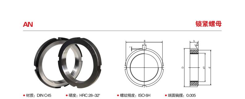 用途:NUT精密锁紧螺母因其能有效提高组装精度,改善主轴挠,安装简单,不易松脱,并延长工件使用寿命,而被广泛应用于需要精密 强力 安全锁紧的精密机构上。